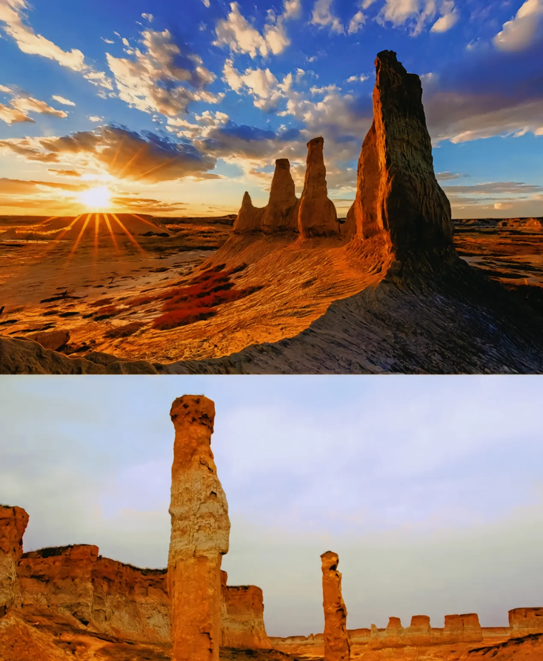 风光地貌天然风化的土林,开车路过都能随时看景。